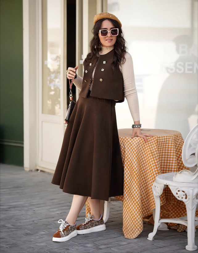 ست وست و دامن یونا با طراحی یونیک و خاص به قدری خوشگله و خوش فرم که از هر دو رو میتوان استفاده کرد. مرغوبترین و باکیفیتترین فوتر بازار برای این کار استفاده شده تا بهترین تنخور را به دست آورد.