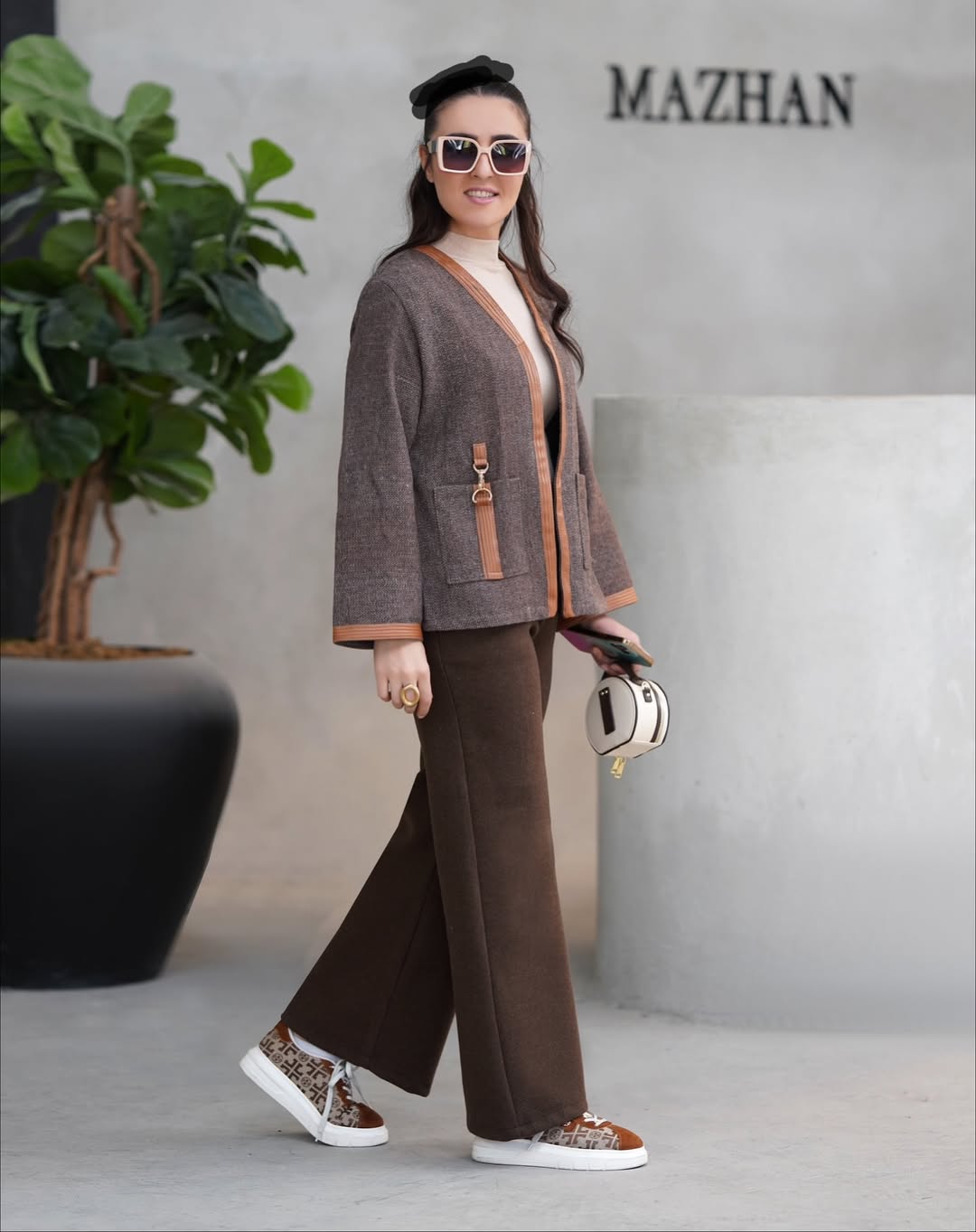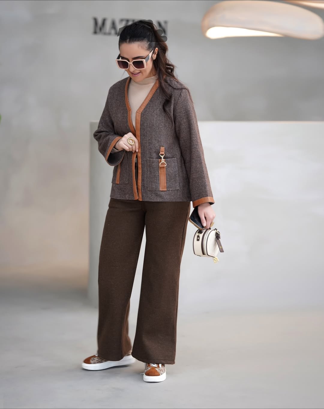 کتوشلوار خاص برای زنی که با استایلش حرف میزنه. ترکیب پارچه شنل با نوار دوزی چرم عسلی، یراق استیل وارداتی و دوختی که با دقت طراحی شده.
