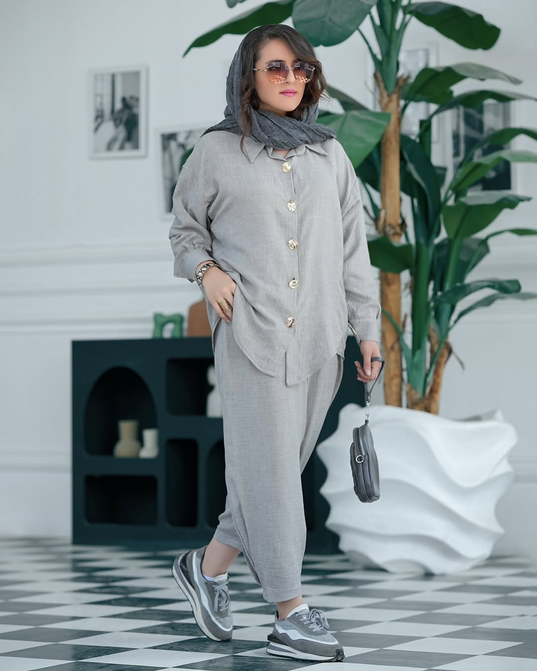 ناموجودست شومیز لینن و وست ژاکارد و شلوار مازراتی ترک سایز ۴۶