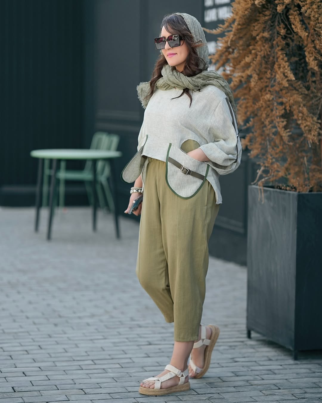 ناموجودست بالاتنه لینن کرهای و شلوار کتان لمه